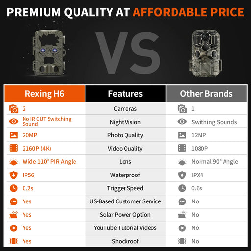 Rexing Woodlens H6 Dual Camera Trail Cam 4K+FHD Ultra HD Video