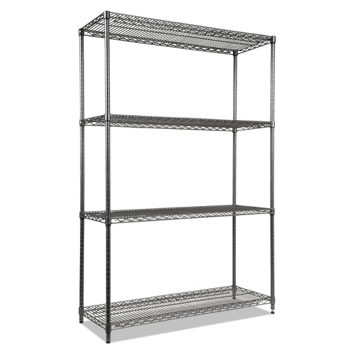 Alera Wire Shelving Starter Kit, Four-Shelf, 48w x 18d x 72h, Black Anthracite