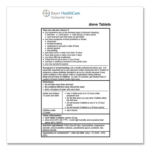 Aleve Naproxin Tablets, 220mg, Refill Pack, One Tablet/Packet, 30 Packets/Box