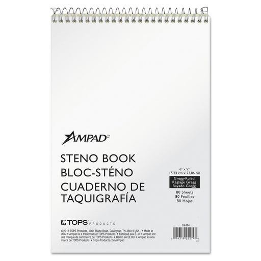 Ampad Steno Pads, Gregg Rule, Tan Cover, 70 Green-Tint 6 x 9 Sheets, 6/Pack