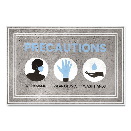 Apache Mills Message Floor Mats, 24 x 36, Gray/Blue, "Precautions Wear Masks Wear Gloves Wash Hands"