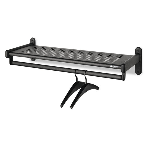 Durable garment shelf with evenly indexed hanger rail secures to any wall to keep garments separate and neatly organized. Perforated shelf above th...