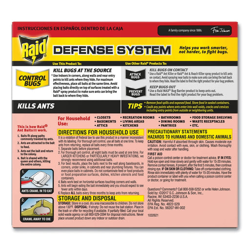 View full detailsRaid Ant Baits III with adhesive secures bait under countertops and on walls to kill ants where they hide for up to three months. After ants feed o...