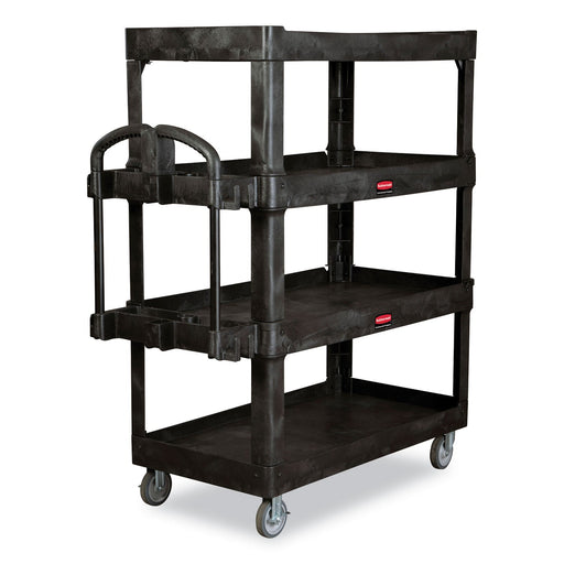 Rubbermaid Heavy-Duty Ergo Utility Cart, Plastic, 4 Shelves, 700 lb Capacity, 24.35" x 54.1" x 62.4", Black