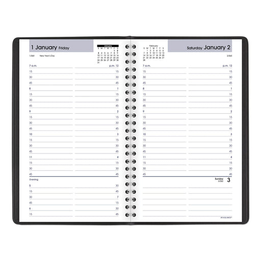 AT-A-GLANCE Daily Appointment Book with 30-Minute Appointments, 8 x 5, Black Cover, 12-Month (Jan to Dec): 2023