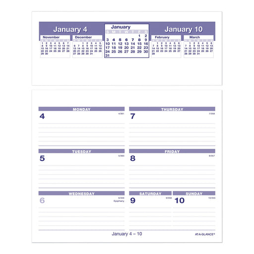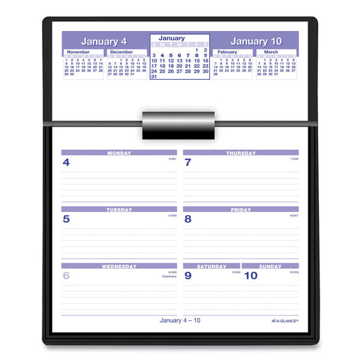 View full detailsWeekly pages flip up and drop into convenient storage base. One week per page, ruled for open scheduling. Current, two past and two future months r...