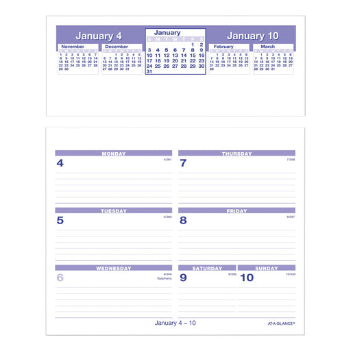 View full detailsWeekly pages flip up and drop into a convenient storage base. One week per page, ruled for open scheduling. Current, two past and two future months...