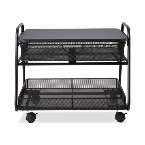 Mobile cart on four swivel casters with two locking, slides easily under desk or work surface when not in use to save space.