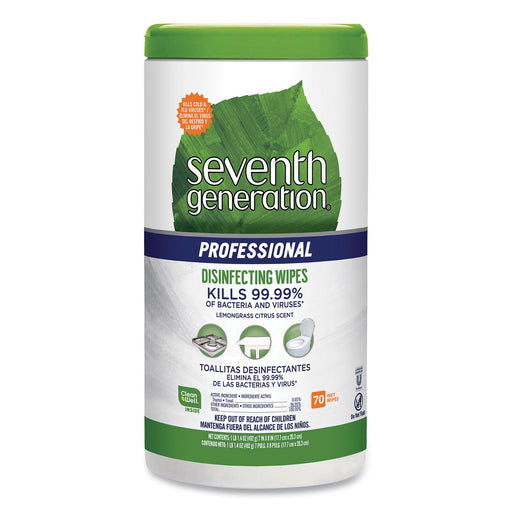 Seventh Generation Disinfecting Multi-Surface Wipes, 8 x 7, Lemongrass Citrus, 70/Canister, 6 Canisters/Carton
