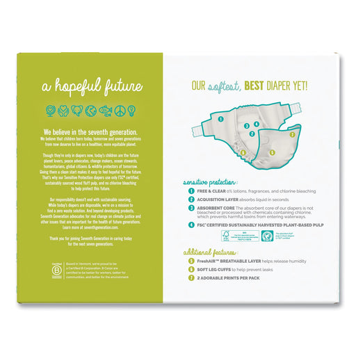 Seventh Generation Free and Clear Baby Diapers, Size 3, 16 lbs to 24 lbs, 124/Carton
