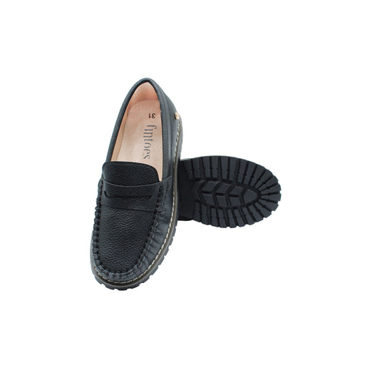 Black pebbled leather loafer/thick sole