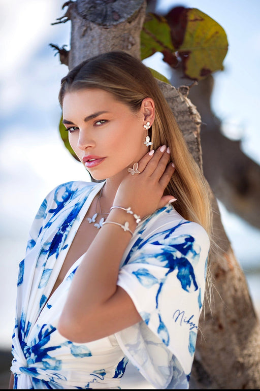 View full detailsDazzle in these gorgeous butterfly earrings! They are perfect for any occasion. Made of pure silver with mother of pearl butterfly wings, encrusted...