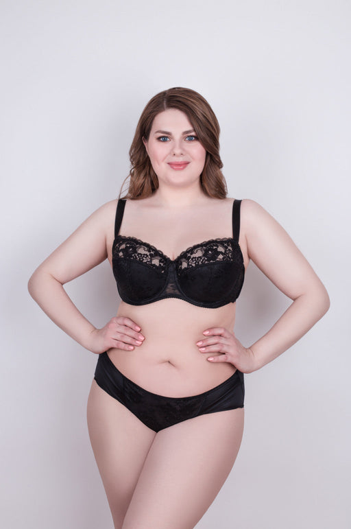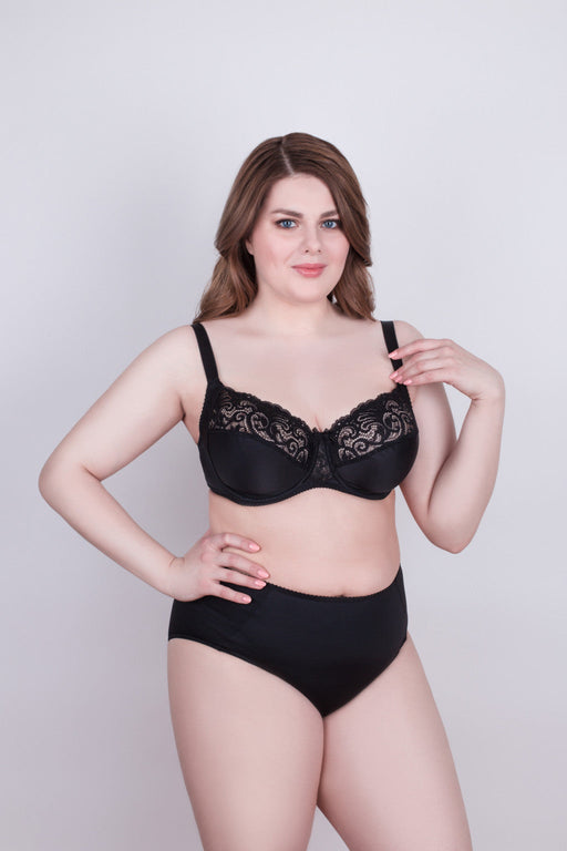 View full detailsMade from elastic knit fabric and elastic lace. The bra with soft underwired cups has triple diagonal segmentation. This construction provides a hi...