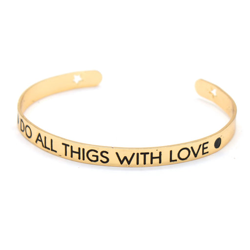 View full detailsThe Stainless Steel Inspirational Bangle Bracelet with the inscription "Do All Things With Love" is a beautiful piece of jewelry that is both styli...