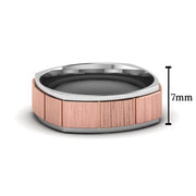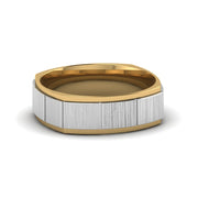 The 2 Tone Gold Texture Square Band Ring from Fascinating Diamonds showcases an exquisite brushed finish texture, beautifully highlighted in a timeless square design across the wide band, featuring a captivating two-tone pattern that adds elegance to your look, making it a perfect choice for those who appreciate refined craftsmanship and distinctive style.