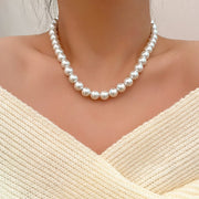 4mm 6mm 8mm 10mm 12mm 14mm White Glass Pearl Necklace for Women