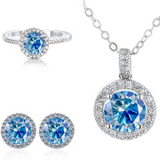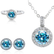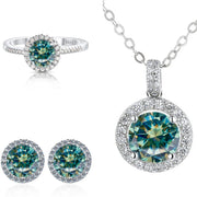 6.5mm Moissanite 925 Sterling Silver Bridal Jewelry Set Ring Earring Pendant