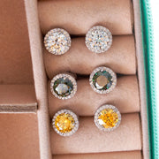 - Earrings stone size: 6.5 mm each — 1.0 CT per stone (2.0 CT total for earrings).