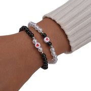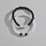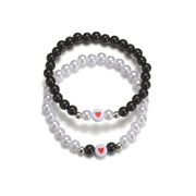 Acrylic Love Heart Beads Pearl Bracelet Set
