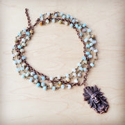 Amazonite Beaded Collar Necklace w/ Indian Pendant 260s