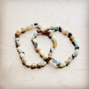 This Amazonite Beaded Stretch Bracelet features a handmade boho style design, perfect for creating a stacked look. Made with stretchable materials, it offers comfort and versatility for easy wear. Add a touch of elegance and charm to any outfit with this beautiful bracelet.