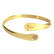 Combining strength and beauty, the anchor bracelet is the perfect keepsake treasure, whether for yourself or a loved one. Just like it's engraved message, this symbol of love and hope keeps you grounded when the storms of life rage. Bold, powerful, and resilient, this striking bracelet adorns your wrist as it reminds you to be strong in the storms of life. Gold anchor bracelet and silver anchor bracelet.