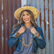 Expertly handcrafted with a bohemian flair, the Aqua Terra Slab Necklace with Genuine Leather Ties is a unique addition to any jewelry collection. Each piece is carefully crafted by skilled artisans for a truly one-of-a-kind look. Elevate your style with this exquisite and versatile necklace.