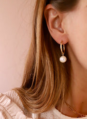 As seen on your favorite influencers, the Audrey Pearl Hoops are a staple in any jewelry collection. These earrings come in two sizes fit for any occasion. Available in small or large gold filled hoop with small and large organic shaped round pearl drop!