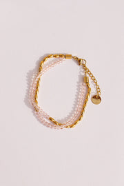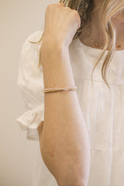 Obsessed is an UNDERSTATEMENT. Meet the Avery Bracelet- this gorgeous bracelet gives the layered, double bracelet look with the ease of one clasp. It's has no stretch, but is adjustable in length so you can get the perfect fit. It's made with gorgeous, soft pink beads, as well as 18k gold plated beads that are completely waterproof and tarnish free. This bracelet is going to work with all seasons and with sooo many outfits and occasions, it is BEGGING to be in your wardrobe!
