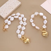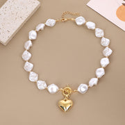 Baroque Imitated Pearl Peach Heart Pendant Necklaces