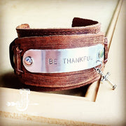 **Be Thankful Hand Stamped Leather Cuff 002y