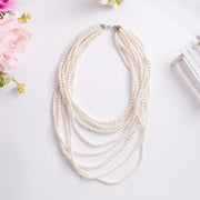 Beaded Pearl Strand Layered Long Fashion Jewelry Necklace