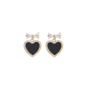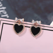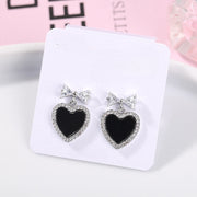 Black Crystal Rhinestone Heart Stud Earrings