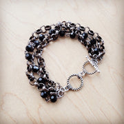 **Black Faceted Triple Strand Beaded Bracelet