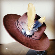 - Hats are shipped with Feather and leather band separate and will need to be assembled to avoid any damage to feather while shipping.