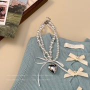 Black Ribbon Bow Heart Pendant Necklace for Women