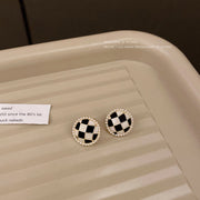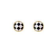 Black White Enamel Checkerboard Stud Earrings