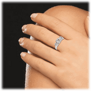 White Gold Sparkly Round-cut Halo Three-Stone Cubic Zirconia Engagement Wedding Bands Ring