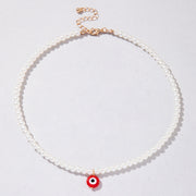 Blue Eyed Beads Pendant Women Pearl Necklace Simple Short Collar