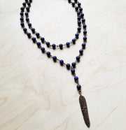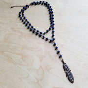 Blue Lapis Double Strand Lariat Necklace with Copper Feather 244z