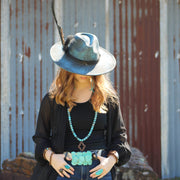Expertly crafted with a gorgeous blue Regalite Jasper on an alloy setting, this Slab Ring effortlessly combines boho and western styles. Elevate your look with the natural beauty of this unique piece. Perfect for any occasion, add a touch of sophistication to your outfit with this stunning accessory.