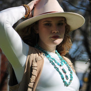 Expertly handcrafted with genuine Magnesite stones, this boho western necklace is the perfect addition to any outfit. The design adds a unique touch, while the genuine double Magnesite Turquoise Pendant provides a timeless and authentic feel. Elevate your style with this one-of-a-kind accessory.