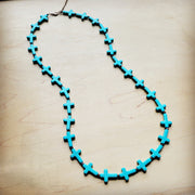 Blue Turquoise & Wood Beaded Cross Necklace 258n
