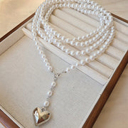 Bohemia Multilayer Long Pearl Chain Necklace Love Heart Pendant
