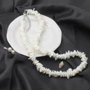 Bohemian Ethnic Natural Square Shell Beaded Chain Necklace