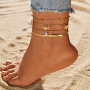 Boho Beach Jewelry Butterfly Multi Layered Anklets Chain