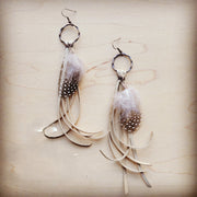 Boho Bone Deer Skin Leather Tassel Earring-Spotted Feather 217d