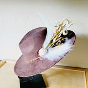 Boho Western Wedding Floral & Feather Bridsmaid Hat in Brown 984n