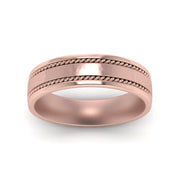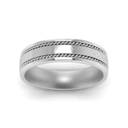 This Braided Mens Wedding Ring from Fascinating Diamonds features a blend of modern style and timeless charm, a classic double inlay, and a refined braided metallic design. The brushed finish in the center lends a polished and sophisticated touch.