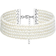 Bridal White Glass Pearl Multi-Strand Choker Necklace